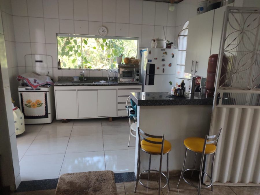 Casa com uma suíte, sala, cozinha americana, área de serviços, fogão a lenha, lavabo externo e varandas de telhado colonial. Pomar formado e produzindo muito!!!